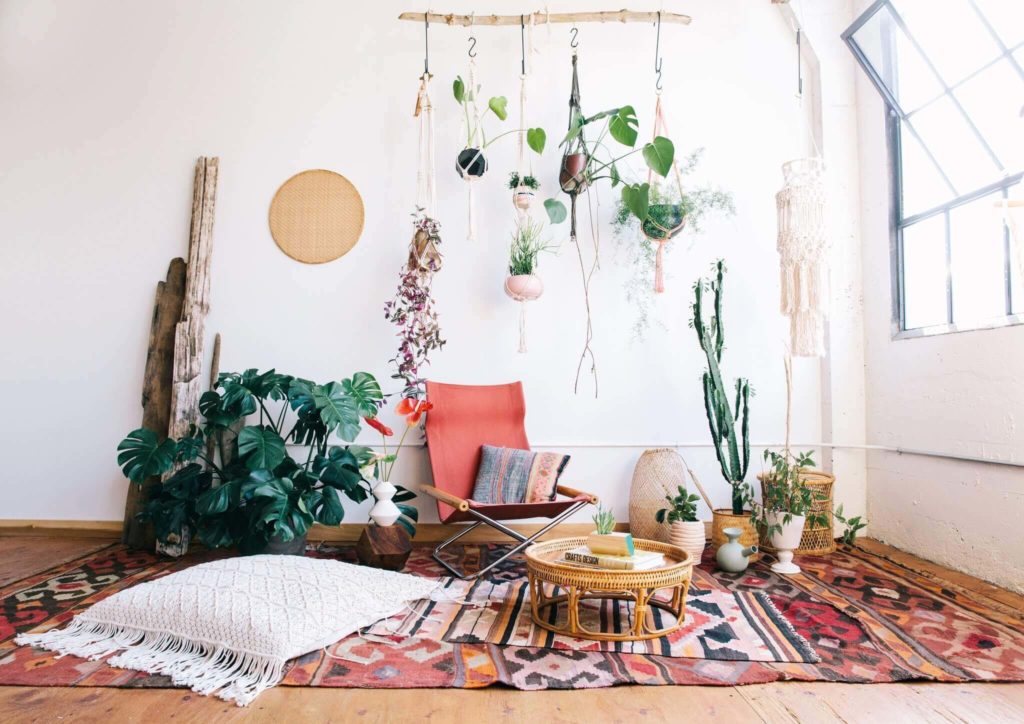 Se caracteriza por tener combinaciones variadas con colores cálidos y el uso de elementos naturales. Podemos decir que es un estilo moderno en equilibrio con la moda hippie, gitana y vintage. Nació de la necesidad de una corriente de dar un valor a la vida, de conectar al hombre con la naturaleza, y disfrutar de una manera más relajada. Los hogares con decoración bohemia le dan un valor justo a lo antiguo y a lo natural.
